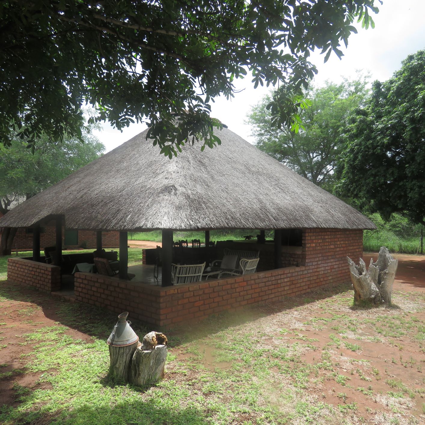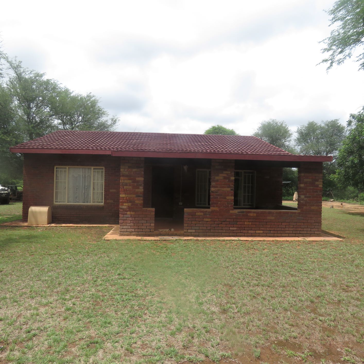 1000 ha in the Alldays area. 2 Bedroom house, 2 single bedroom chalets, thatched Lapa with bar, boma, 3 equipped boreholes, 4 bowhunting blinds at water holes, cold-room in shed with tools, meat processing room with tables and bandsaw, all furniture included.